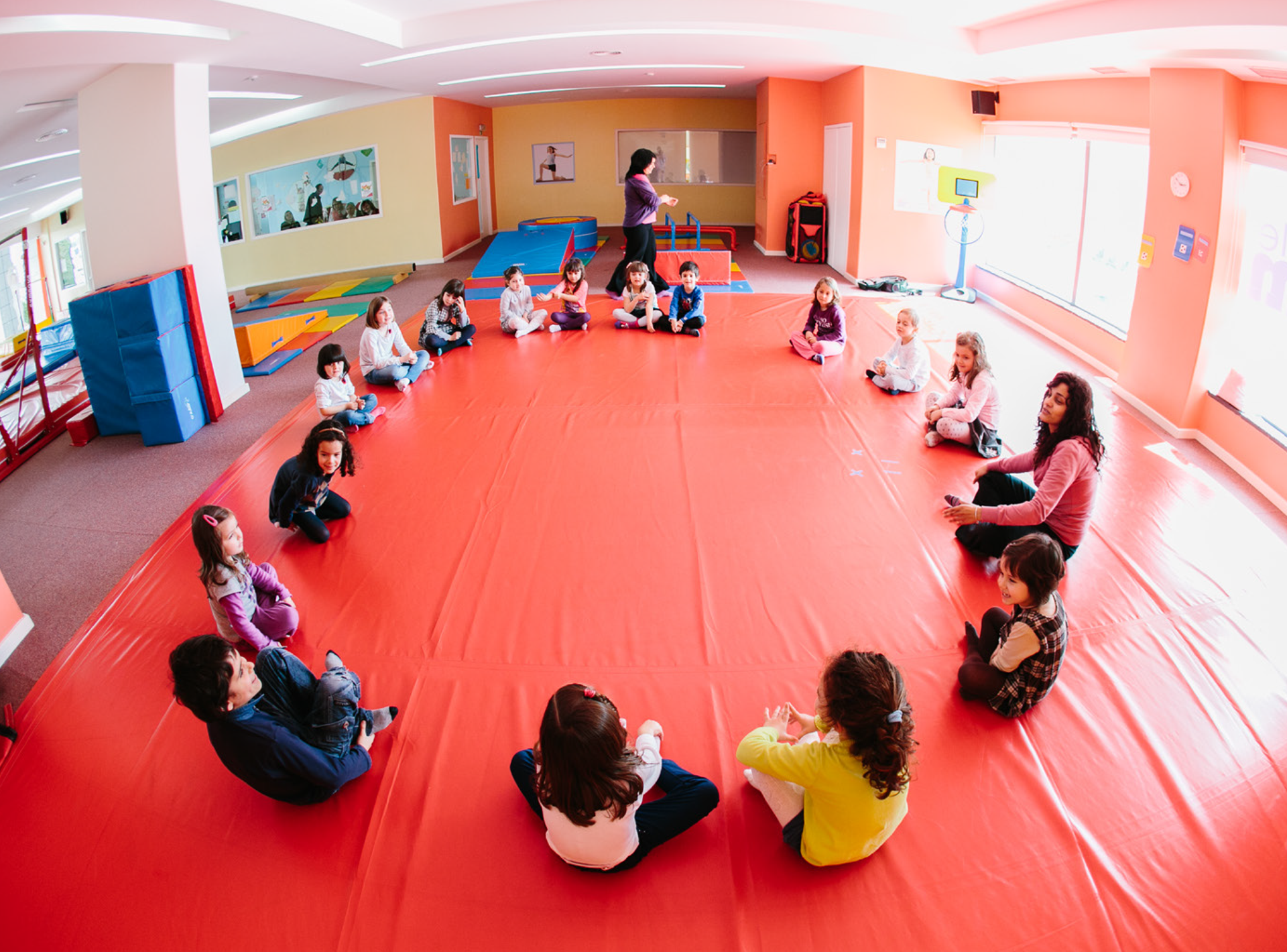 Atividades (60 a 75 minutos): Jogos, dança e ginástica divertida! As crianças vão explorar o Paraquedas, o Colchão Saltitão, o Jogo do Homem-Aranha e o Tapete Voador, além dos aparelhos de ginástica (argolas, paralelas e trave olímpica – a famosa “ponte mágica”). Começamos sempre com um aquecimento animado e uma coreografia adaptada a rapazes e raparigas.